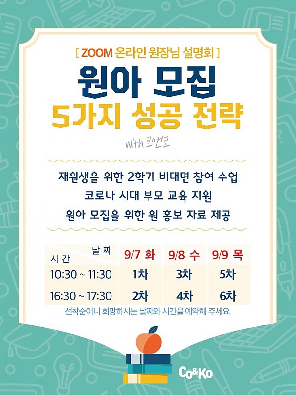 9월, 더욱 강력해진 콘텐츠로 준비한 ZOOM 코앤코 원장님 설명회가 찾아옵니다~!
